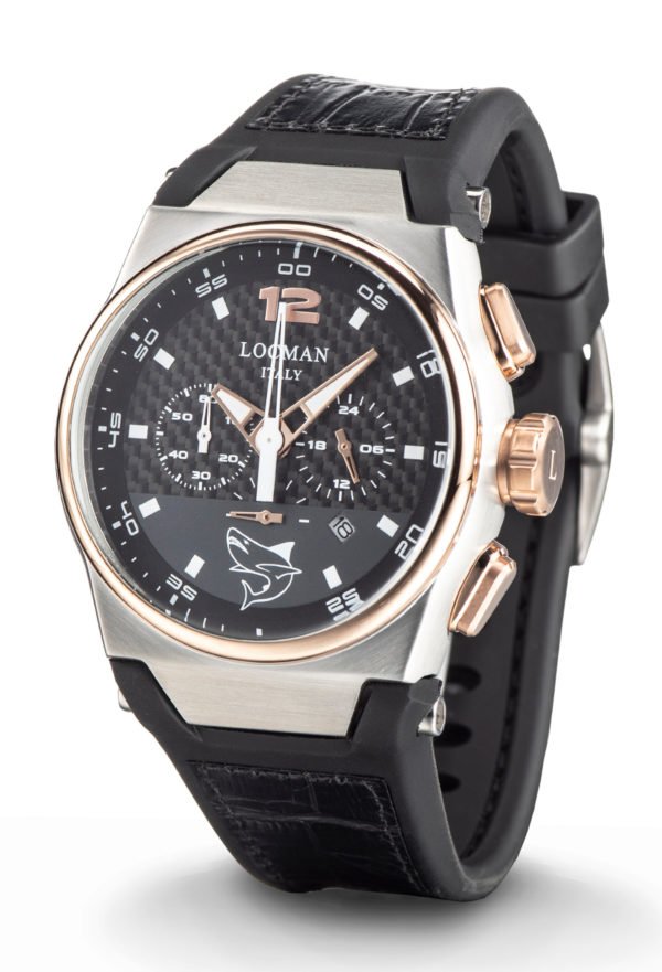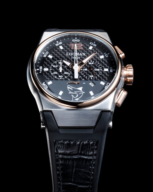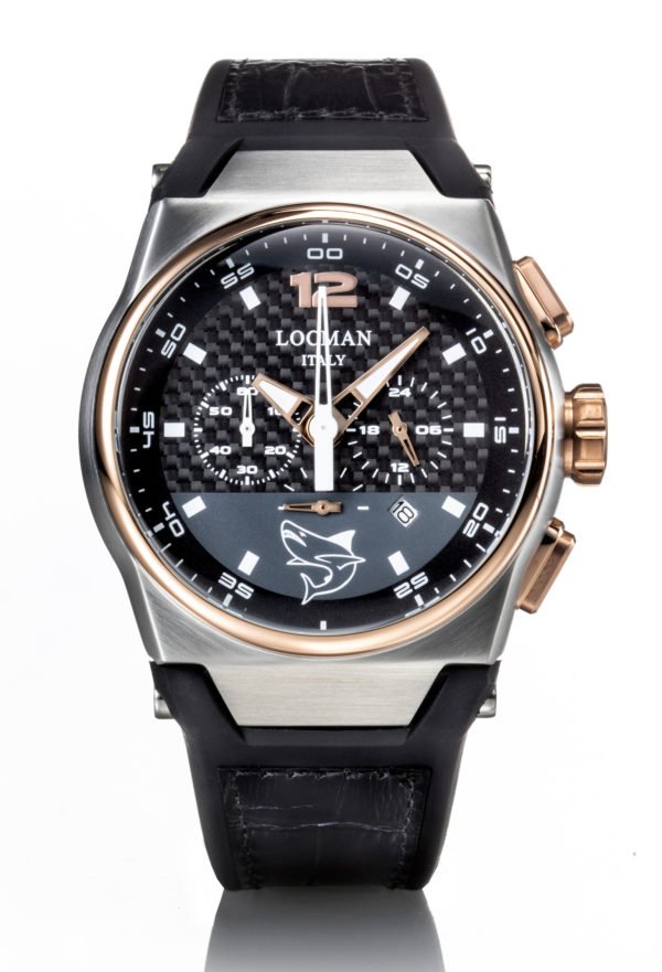 Orologio da uomo di Locman della collezione Nuovo Mare. Modello Cronografo con datario con movimento al quarzo. Cassa in acciaio e titanio. Quadrante grigio e cinturino in pelle e silicone di colore nero. Resistenza all’acqua 10 atm.