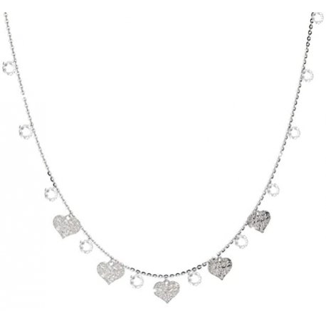 Gioiello Realizzato In Argento 925 Rodiato Con ciondoli A Forma di Cuore Diamantati e Swarovski Bianchi che donano un tocco di Luminosità alla Collana.
